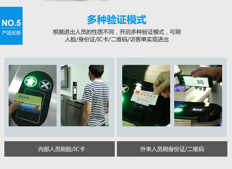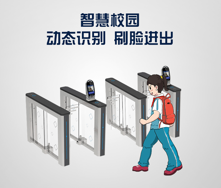 广泛用于大型工厂、智慧园区、学校等。可提前批量导入人脸图像,人员进出时实现刷脸开闸,提升来访体验,提升企业单位高端形象;同时,智能通道闸可防水、防撞、防尾随,增加产品的使用价值,提升单位进出的安全性。